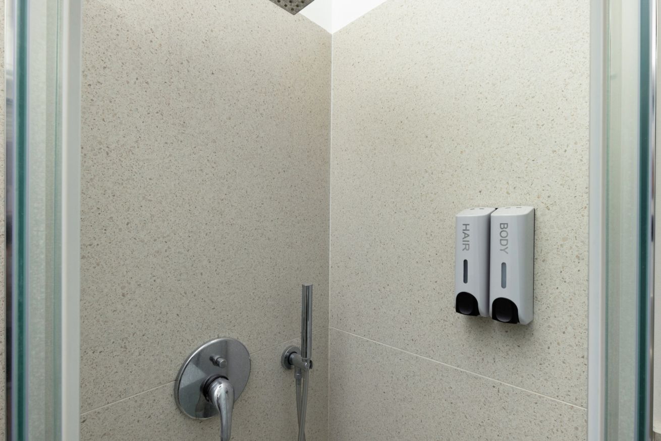 Il bagno privato dispone di doccia, lavandino, water ma NON ha un bidet. Il water è attrezzato con un piccolo doccino.